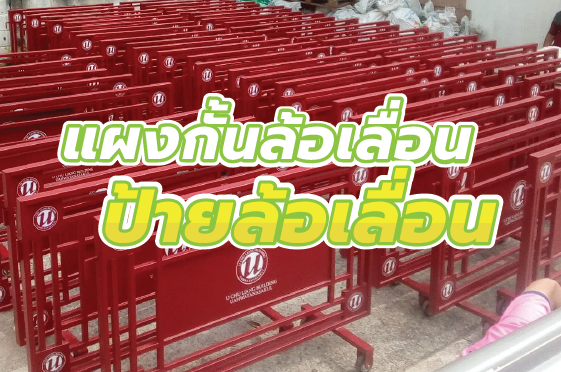 "ป้ายล้อเลื่อนหรือแผงกั้นล้อเลื่อน" ผลิตด้วยเหล็กพ่นสีระบบ 2K ทำให้สีมีความคงทนต้องสภาพแวดความร้อนได้เป็นอย่างดี