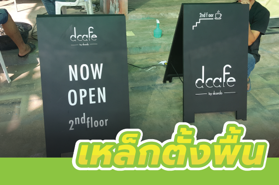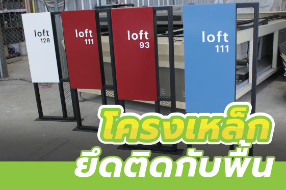 ป้ายโครงเหล็ก ยึดติดกับพื้น นิยมทำเป็นป้ายบอกทาง ป้ายธงข้างทางทางเข้าโครงการบ้านหรือคอนโด ป้ายหน้าเซลล์แกลอรี่ ป้ายซอย ป้ายตัวอย่างบ้าน ป้ายหน้าร้าน เพราะไม่ต้องเคลื่อนย้ายไปไหน ต้องการการยึดเกาะที่แน่นหนา